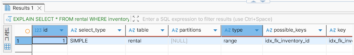 EXPLAIN SELECT * FROM rental WHERE inventory_id IN (47, 48);