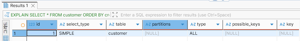 EXPLAIN SELECT * FROM customer ORDER BY create_date DESC LIMIT 10;
