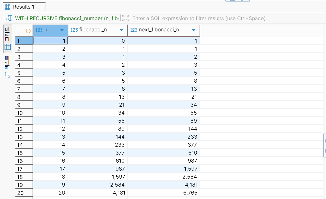fibonacci_number (n, fibonacci_n, next_fibonacci_n) AS (